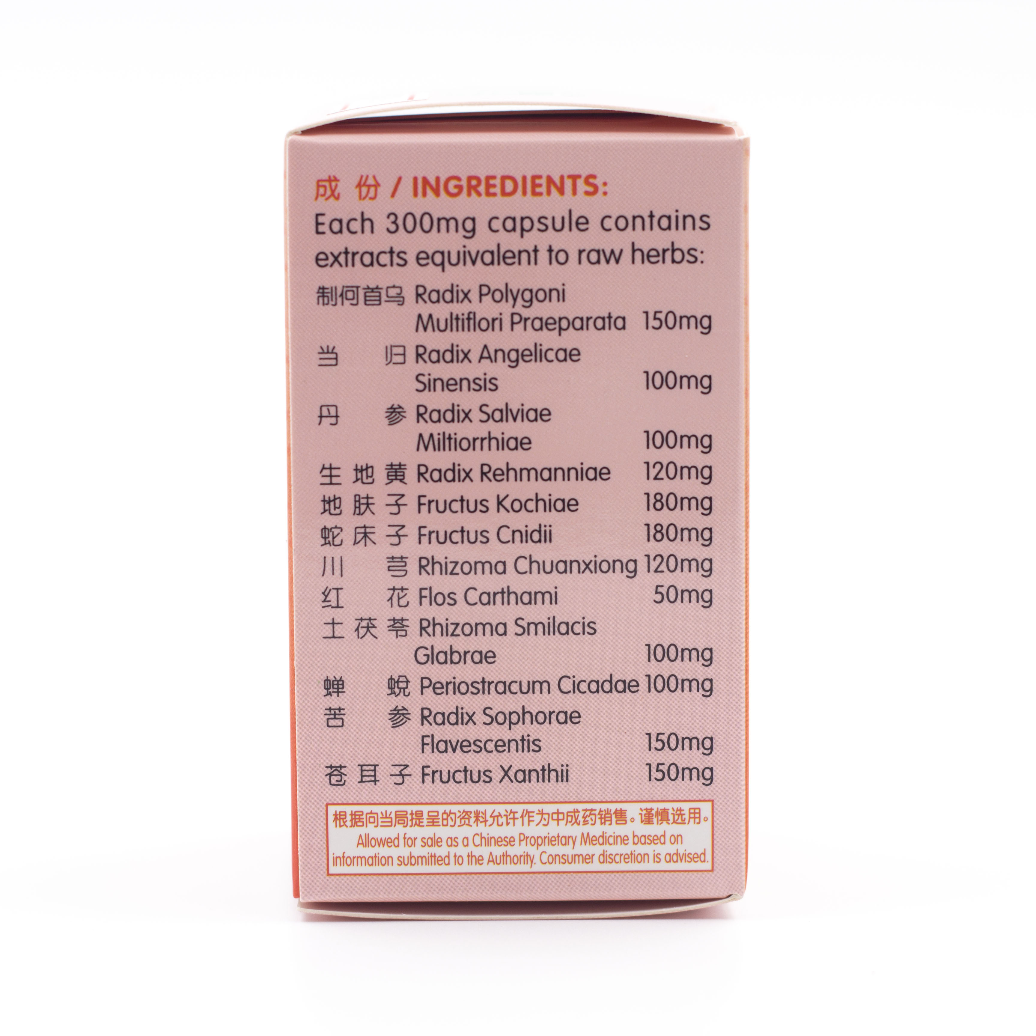 For oral administration, take 3 capsules, 3 times daily. For serious cases, the recommended treatment course is thirty days.